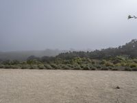 A serene California landscape at dawn, filled with fog and a gloomy grey sky. Open spaces and vineyards stretch out towards the horizon. Nature's beauty is showcased in this rural wilderness.