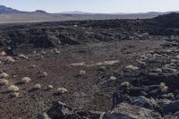 the barren area of an arid area of the desert, with mountains in the distance