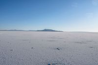 A lone horse walking across the vast open space of the California desert. The calm and peaceful scene is set against the backdrop of the distant mountains and hills. A surreal day in the majestic landscapes of California.