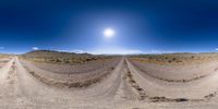 three view - panoramic photographs of desert field under sunray, taken from vehicle