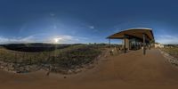 A dirt track winds its way through the picturesque California countryside, leading to a winery in the distance. The modern architecture of the building stands out against the natural landscape of mountains and open fields.