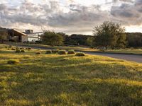 This captivating stock photo showcases a modern residential home nestled among lush green vegetation in California, USA. The image features a picturesque dirt road that curves gracefully towards the property, which boasts a beautifully landscaped grass surface and a variety of majestic trees. The break of day bathes the scene in warm sunlight while fluffy clouds create a captivating play of light and shadow. The sprawling suburban area surrounding the house adds to the peaceful ambiance, evoking a sense of tranquility and natural beauty. Perfect for showcasing the allure of modern architecture melded with the serenity of nature in the heart of California.