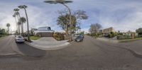 A captivating view of a residential area in Los Angeles, California. The modern architecture and straight road create a futuristic atmosphere. The grey sky adds a touch of gloom to the scene.