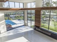 A modern architectural masterpiece in Los Angeles, California. This stunning home features high ceilings, floor-to-ceiling windows, and open spaces. The interior design showcases a perfect blend of concrete surfaces and elevated living areas.