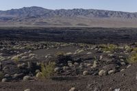 This image captures the rugged and elevated landscape of Pisgah, California, USA. The photo shows a clear sky above the desert terrain, featuring rocky mountain landforms and open spaces. The dirt road and off-road tracks highlight the wild and natural environment. The gravel and rocky surface are evidence of the geology and formation of the area. In the distance, a high plateau with a volcanic crater can be seen. This picture represents the beauty and untouched wilderness of the Pisgah area.