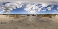 A wide-angle shot of an empty street in Los Angeles, California. The road stretches out towards the horizon, surrounded by the natural beauty of the California landscape. The blue sky and open space create a sense of calm and tranquility.