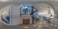 California Living: A Spacious Living Room with Staircase, Loft, and Open Kitchen