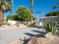 A modern residential villa in California, with sleek architecture and a clear sky above. The road leading to the house is lined with asphalt, while the surrounding desert landscape adds a touch of the Sonoran charm.