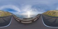 An elevated view of the Pacific Coast Highway in Big Sur, California. The road curves along the mountain, offering breathtaking views of the coastal waters. The clear sky and sunshine enhance the emotional experience of the journey.