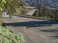 This is an image of an elevated road in California, USA. The road is made of asphalt and winds through a mountainous landscape. The photo captures the natural beauty of the area with its high peaks and shadows. An Armco barrier runs parallel to the road, providing safety for drivers. This picture represents a sunny day in California and showcases the stunning landscape and infrastructure of the region.