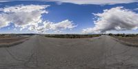 A skateboarder glides down an empty road in the scenic landscape of Los Angeles. The sky is clear, showcasing the vibrant California sunlight. Mountains and open spaces provide a breathtaking backdrop.