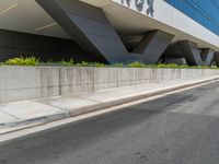 the sign is clearly visible on this building's front facade and wall as well as landscaping
