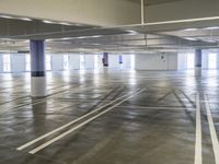 An empty parking garage in Los Angeles, California, showcasing modern architecture and ample space. The composite material flooring and concrete ceiling provide a sleek, contemporary look. Conveniently located near the road, this parking deck offers easy access for all.