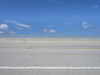 A picturesque road trip through rural California. The asphalt road winds along the coastline, with clear blue skies and the sea in the horizon. The concrete street is lined with fences and guard rails, creating a serene landscape.