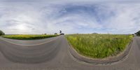 A scenic road in California, surrounded by lush green grass and majestic mountains. The clear sky complements the classic architecture of the residential properties. A tranquil day in the natural environment.