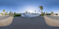 a photograph of a skate park with an artificial structure and palm trees in the background