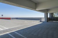 An empty parking garage in Los Angeles, California. The open space and clear sky create an urban design overview. The concrete surface and modern architecture showcase the city's vibrant lifestyle.