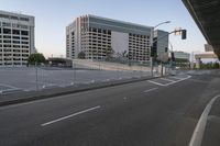 A view of the modern architecture in downtown Los Angeles at dawn. The city's high-rise buildings and clear sky create a stunning urban landscape. The bustling business district is a showcase of California's urban design and city life.