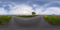 A scenic drive through the rural landscapes of California, USA. The curve road leads through open grassy fields and mountainous terrain. Classic architecture and farmhouses dot the horizon. A beautiful day to explore nature.