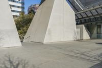A modern architecture marvel in Los Angeles, California. The towering office building stands tall in the bustling business district. The smooth surface of the concrete and marble flooring adds elegance to the urban design.