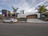 Aerial view of a modern residential area in Los Angeles, California. The city comes to life as the dawn breaks, with cloud streaks and contrails in the sky. The asphalt roads and concrete surfaces are lined with suburban homes and driveways. A perfect blend of urban and suburban living.