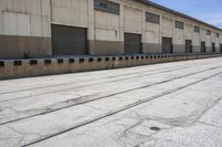 A view of an industrial warehouse in Los Angeles, California. The beige facade and cement floor create a contrast with the surrounding buildings. The loading dock and storage area provide ample space for industrial activities in the bustling city.