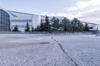 A modern office building in the heart of a Canadian city. The sleek concrete facade reflects the grey sky and surrounding urban landscape. A perfect winter day to showcase the city's urban design and business district.