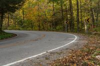 This image displays a scenic road in Ontario, Canada. The asphalt road curves through a beautiful forest, surrounded by lush green grass and tall trees. The branches of the trees hang over the road, creating a woody plant canopy. The road surface, made of tar, is well-maintained and blends harmoniously with the natural environment. This photo captures the peaceful and picturesque landscape of Ontario. It is a perfect representation of the serene beauty of the Canadian countryside.