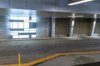 An elevated view of a concrete road in Toronto. The high concrete street leads to an entry point of a parking garage. This daytime scene showcases the urban infrastructure of the city.