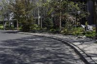 This image showcases a residential neighborhood in Ontario, Canada. The classic architecture of the buildings is complemented by the straight, asphalt road that runs through the area. Lined with trees, the road leads to a clear sky above. The houses have windows that provide views of the surrounding vegetation. The curb and road surface are well-maintained, and overhead power lines can be seen. This photo captures the urban design and infrastructure of the neighborhood, highlighting the straight thoroughfare and the classic architecture of the buildings. A typical day in Ontario's residential area.