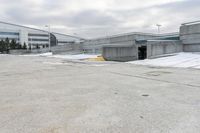 A modern office building in Canada's business district. The grey sky sets the tone as snow covers the city streets and the highway entrance ramps. Urban design meets concrete and asphalt surfaces for a sleek and professional look.