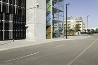 an empty street near tall buildings and a large puddle with a water spout in the middle of it