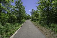 This is a photo taken in Toronto, Ontario, Canada. The image shows a straight road that stretches into the distance, surrounded by lush green vegetation and trees. Street lights line the road, illuminating the asphalt surface. The clear sky overhead adds to the overall picturesque landscape. This photo captures the beauty of nature in an urban setting, showcasing the vibrant greenery and peaceful surroundings of Toronto, Ontario. The road, adorned with bushes on the sides, invites viewers to explore the city and enjoy its natural charm.
