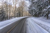 Canadian Road in Snowy Forest under Grey Sky