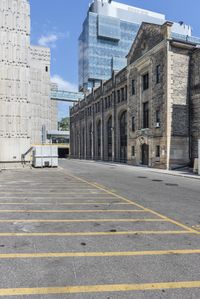 A modern office building located in the downtown area of Toronto, Canada. The sleek facade and urban design of the building reflects the bustling city life and business district. The building stands tall among other properties in the town.