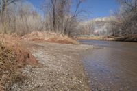 This image showcases the stunning natural landscape of Capitol Reef, Utah, USA. The photograph captures the breathtaking beauty of Cathedral Valley, with its red rock formations, clear blue skies, and lush vegetation. The picture shows a road surface leading to Fruita and the Fremont River. The dirt road is lined with trees, grass, and twigs, adding to the picturesque scenery. The serene creek and off-road track in the foreground invite exploration of the diverse terrain. This photo embodies the unspoiled nature and tranquility of the Utah landscape.