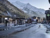 This stunning stock photo captures the picturesque beauty of Chamonix, France. The image showcases a charming mountain village nestled amidst snowy mountain ranges. The clear sky in the background accentuates the scenic landscape. With the iconic Mont Blanc and Aiguille du Midi as the backdrop, this image is a perfect representation of Chamonix's allure as a popular tourist attraction for winter tourism and skiing. The wet and freezing weather adds to the overall ambiance of this captivating destination in Europe.