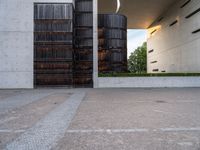 This image captures the modern architecture of a museum in Berlin, Germany. The city's urban design is showcased through the structural elements of the building and the surrounding urban landscape. Two tall dark brown metal tanks sit next to the museum, adding to the architectural structure. The building features windows on top of each tank, allowing for natural light and a glimpse into the city life. This photo represents the vibrant architectural scene in Berlin and the integration of modern design in an urban setting.