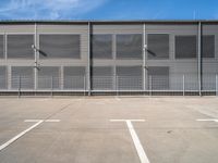 City Architecture: Large Steel Metal Building with Sliding Doors and Parking Spaces