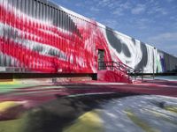 A vibrant city scene in Berlin, Germany. Modern architecture and colorful graffiti murals adorn the streets. Bustling city life, with a mix of art galleries, warehouses, and urban design. The clear sky sets a bright backdrop for this European art district.