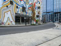 A vibrant mix of modern architecture and graffiti art in the heart of Portland's art district. The colorful and energetic streets provide a snapshot of urban life in the USA. This bustling neighborhood is a hub for businesses, cafes, and office buildings.