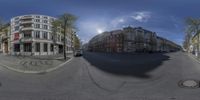 A bustling city street in Berlin, Germany. Modern architecture lines the road, with residential buildings and homes in the background. Trees and vegetation provide a touch of nature in the urban setting.