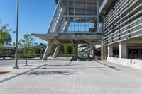 This image captures an urban scene in Toronto, Canada. The clear sky above highlights an empty parking lot with a basketball hoop and benches lining the walkway. The open space and modern urban design reflect the vibrant city life of Toronto. It is a typical day in the city, with roads and parking decks visible in the background. The photo showcases the combination of urban infrastructure and a relaxing outdoor space. This image represents the essence of city living and the balance between convenience and open areas in Toronto.