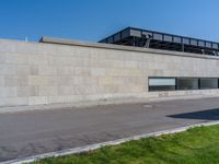 Modern architecture in Berlin's urban landscape. Clear sky over the city, highlighting sleek urban design. Asphalt roads and pavers lead to city life entry and exit points. A glimpse of European urban architecture.