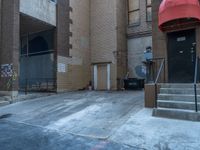 Urban alleyway in Salt Lake City, Utah. Asphalt road flanked by parking decks and garages. Vibrant urban design exemplifies the bustling city life of the USA.