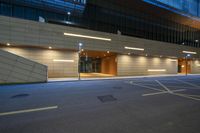 A night view of a modern office building in the bustling city of Shenzhen, China. Neon lights illuminate the street, creating a vibrant city atmosphere. The office building stands as a symbol of urban design and business in Asia.