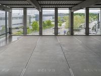 This is an image of a straight road in the city of Berlin, Germany. The urban landscape features modern architecture and open spaces. The concrete street leads to a parking garage with a parking deck. The photo represents the urban design and architecture found in Berlin and reflects the modernity of Europe. This image captures a typical day in the city.