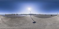 a panorama image of the city skyline from the top of a ramp on the freeway