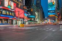 This is an image of a city street intersection at night in New York City, USA. The clear sky illuminates the city with artificial light, creating a vibrant urban landscape. The roads are lined with storefronts and restaurants, inviting people to eat out and shop. Street lights dot the streets, providing illumination and adding to the city's nighttime charm. This photo represents the bustling city life and urban design of New York City at night.