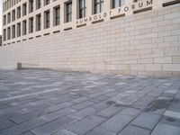 This image showcases the urban design and modern architecture of Berlin, Germany. The stone pavement in the foreground leads to a building with a sign that reads 'Umbold Forum'. The clear sky at dawn enhances the city's vibrant atmosphere. The rectangle-shaped pavers on the surface of the road create a unique aesthetic. This photo represents the city life and architectural beauty of Berlin. It is a perfect shot for showcasing urban design and modern architecture.